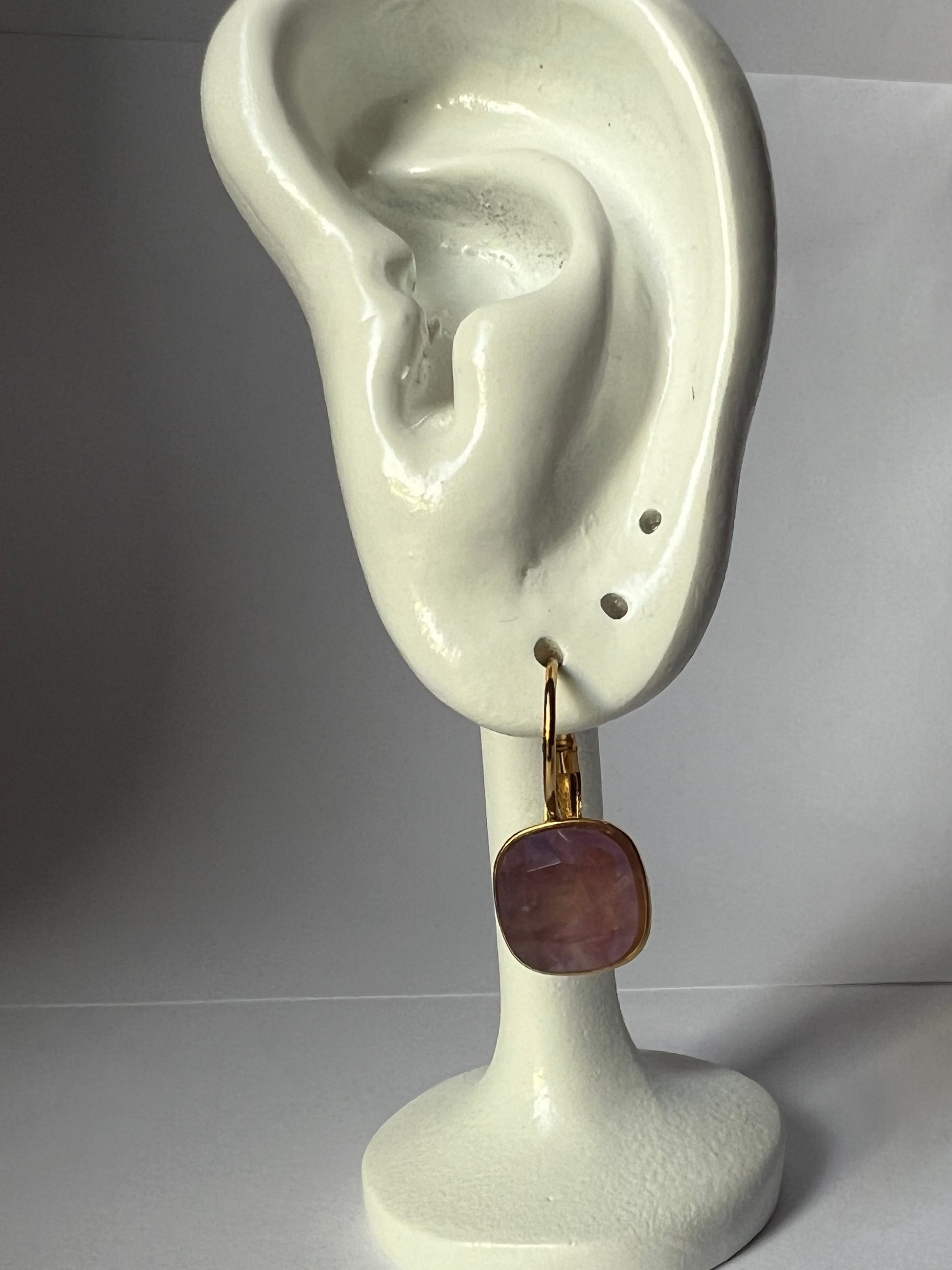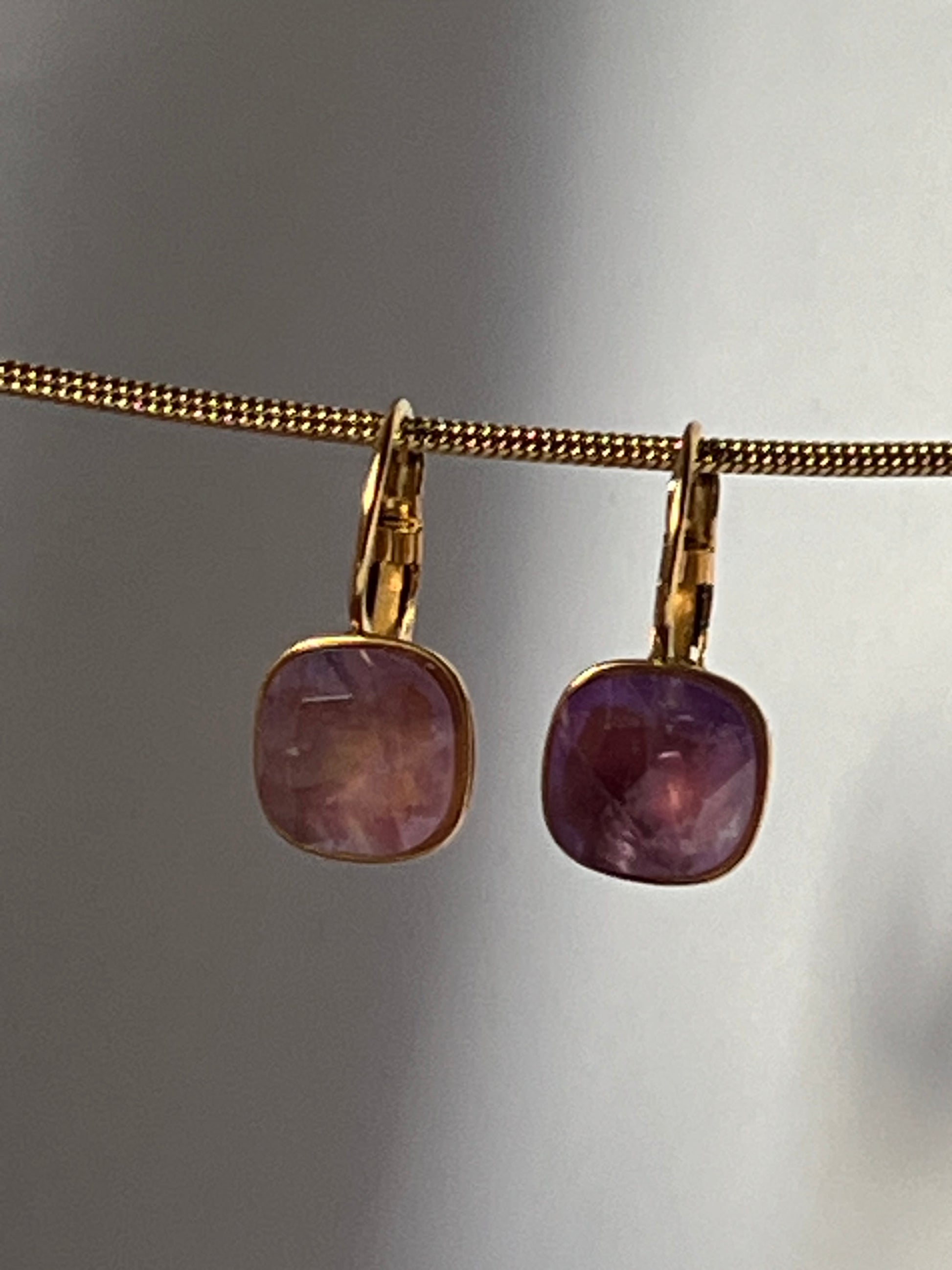 Boucles d’oreilles dormeuses en acier inoxydable sublimées de cristaux de Swarovski.